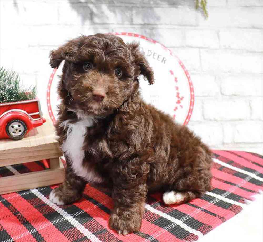 The Mini Aussiepoo is a cross between the Miniature Australian Shepherd and the Poodle.